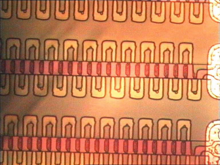 This microscope has a much longer working distance (20.5mm) and a 1 to 2x zoom. The situation with a manipulator only is clearly much better than with the Nikon. The body of the Mitutoyo is also shorter than that of the Nikon making it easier to mount and producing a smaller moment on the sliding mount.