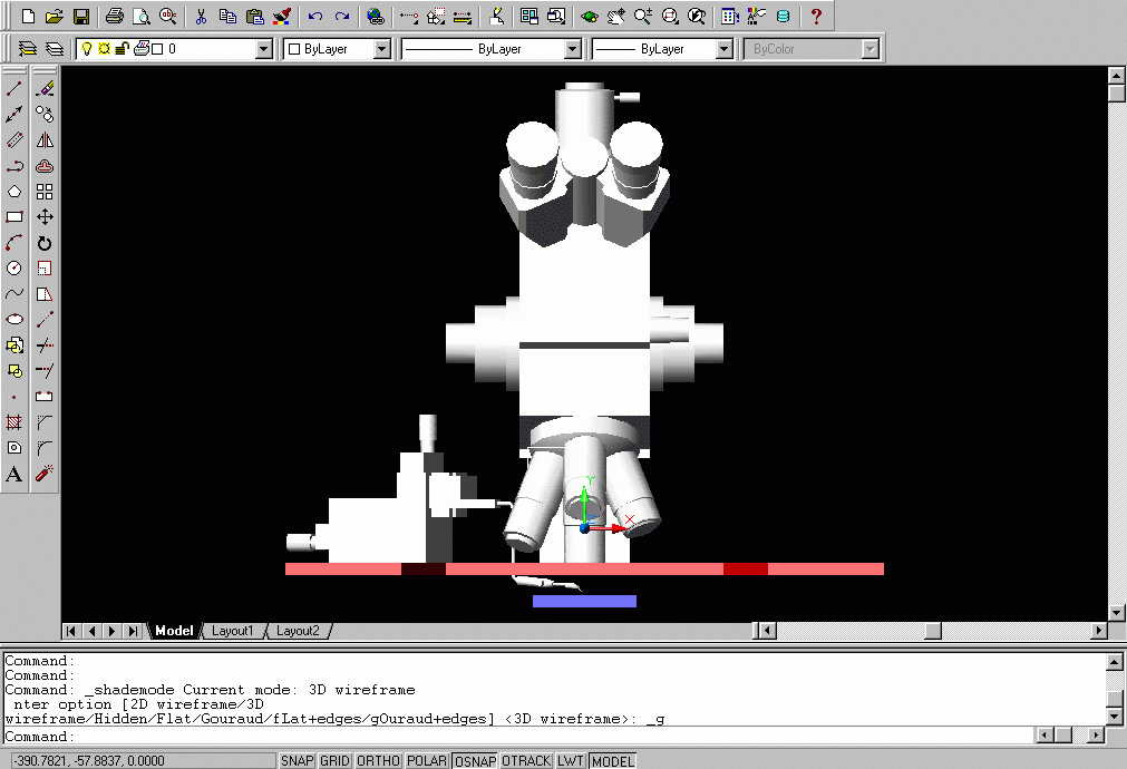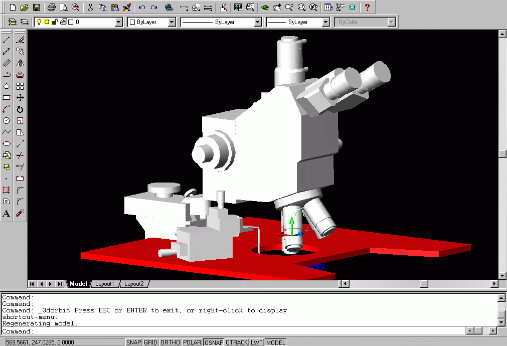 To find which microscopes would fit a 3D model was made using Autocad 2000 of the two most likely candidates: The Mitutoyo FS60 and Nikon Modular focusing unit.